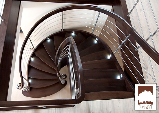 1/2 gewendelte bogengeformte Wangentreppe mit LED-Beleuchtung