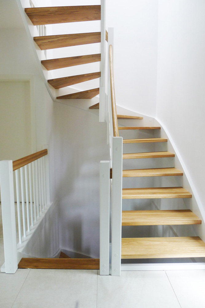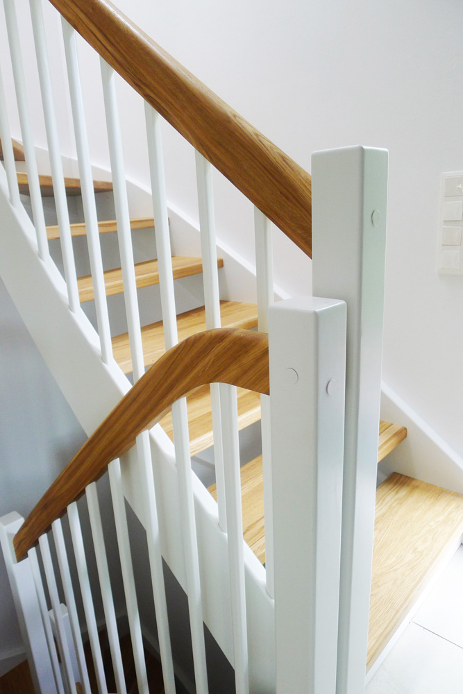 Wangen, Stäbe und Pfosten Erle deckend weiß lackiert nach RAL