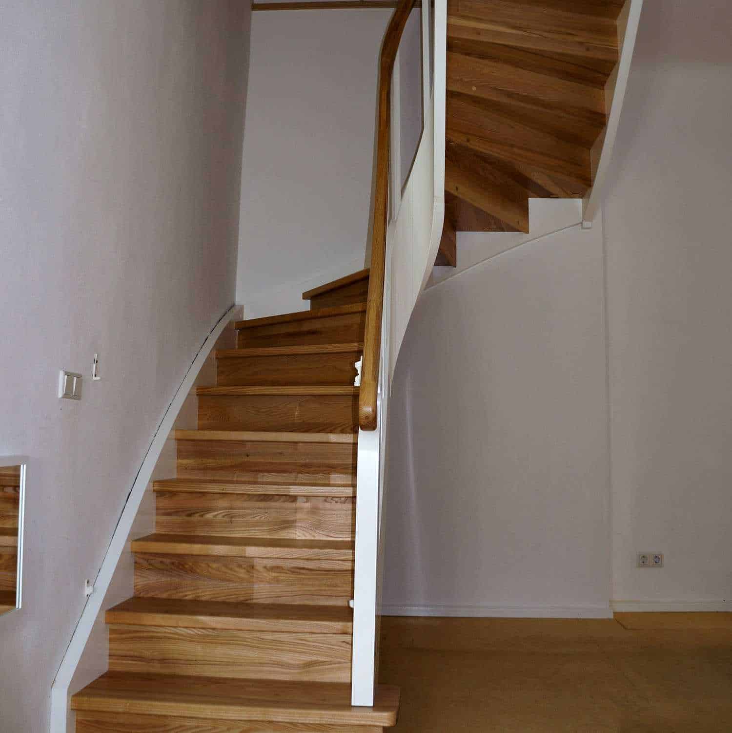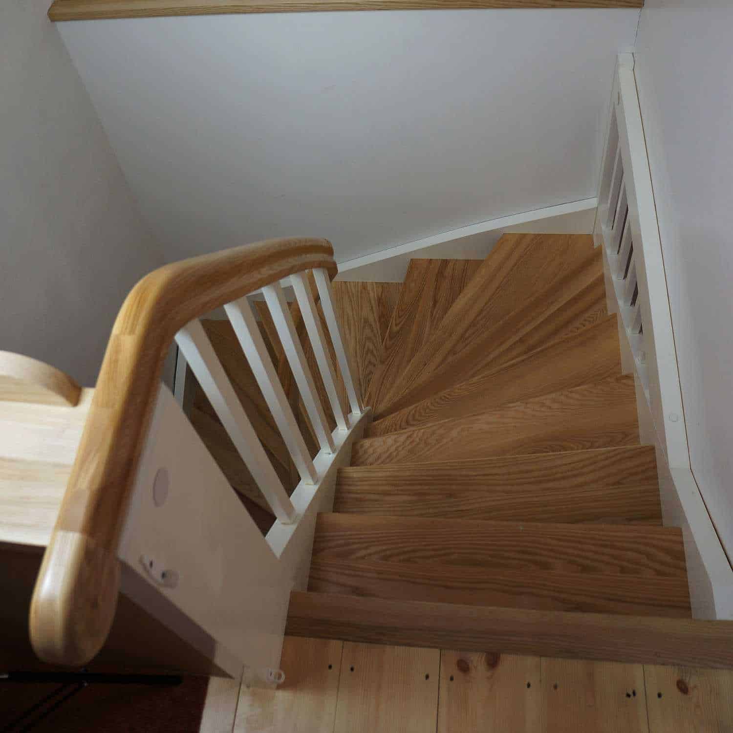 Stufen, Handlauf u. Setzstufen – Eiche farblos lackiert;