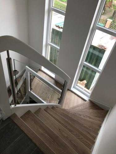 1/2 gewendelte, offene Wangentreppe mit Podest