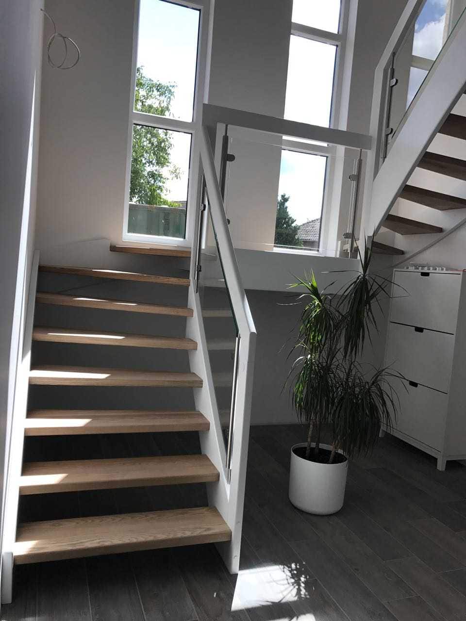 Wange, Pfosten und Handlauf – Erle deckend weiß lackiert nach RAL