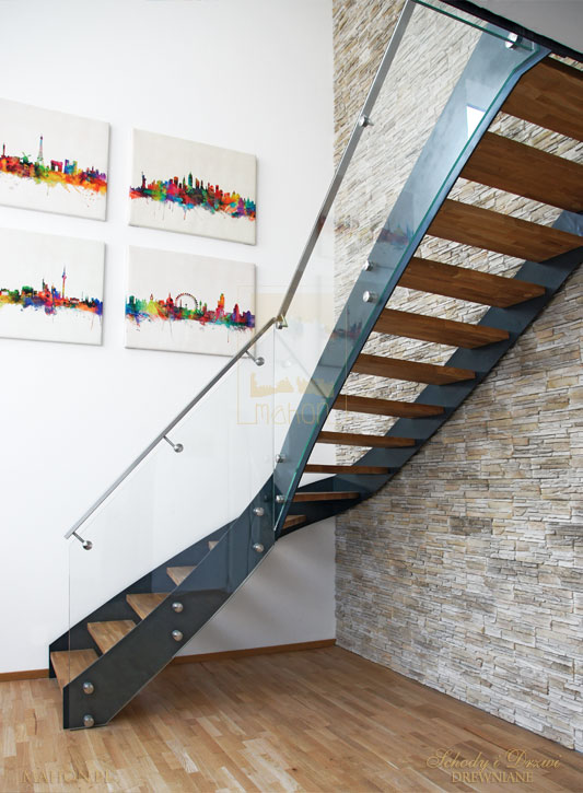 1/4 gewendelte, offene Stahlwangentreppe