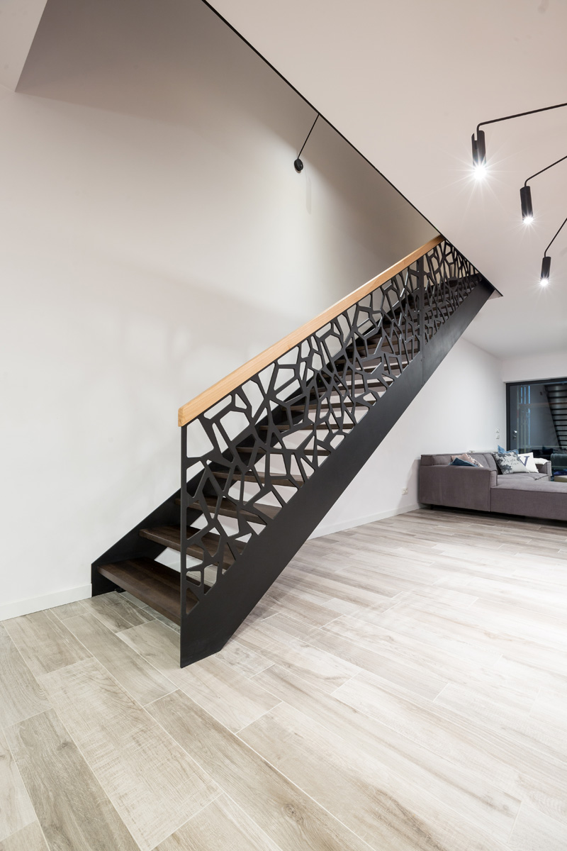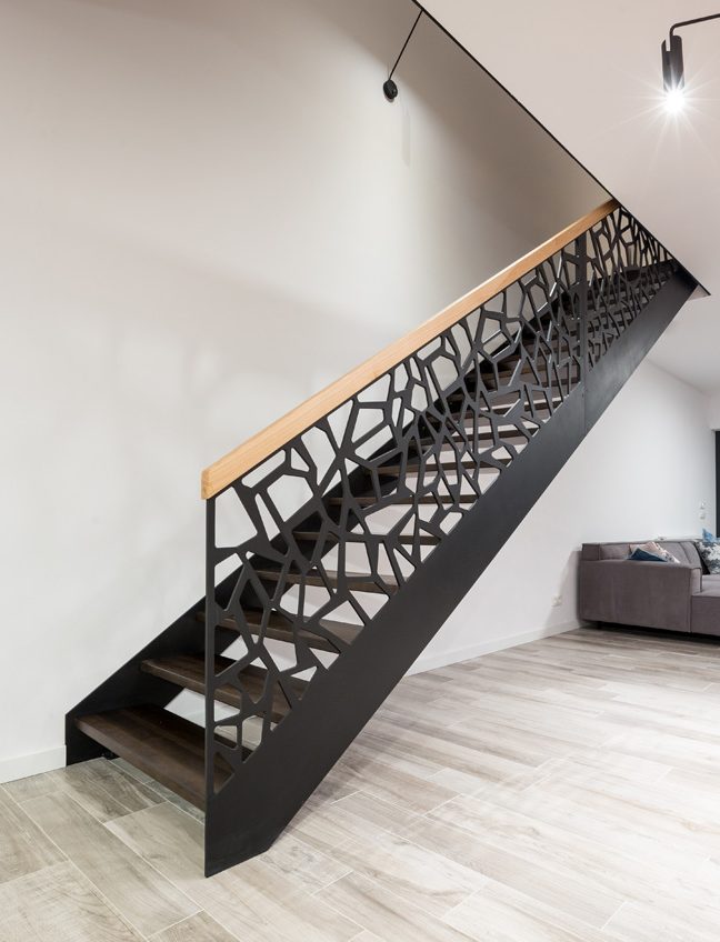 Stahlwange u. Geländer mit Pulverbeschichtung nach RAL