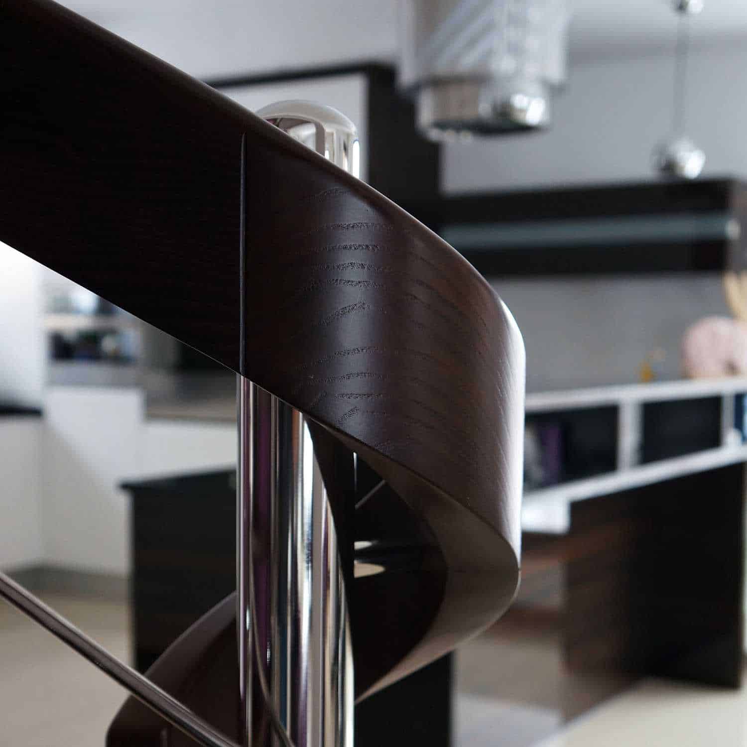 1/4 gewendelte, offene Wangentreppe, Handlauf – und Wangenkrümmling,