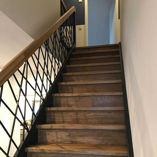 Stufen, Handlauf und Setzstufen – Eiche farblos lackiert;
