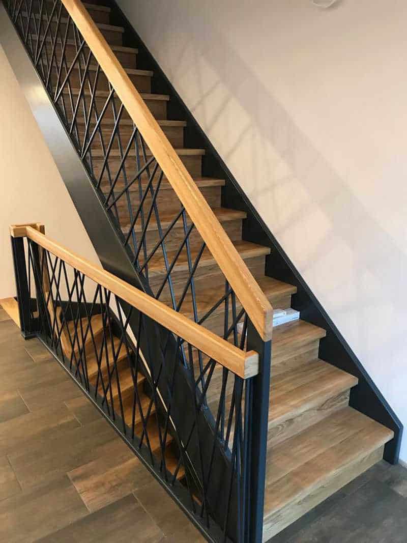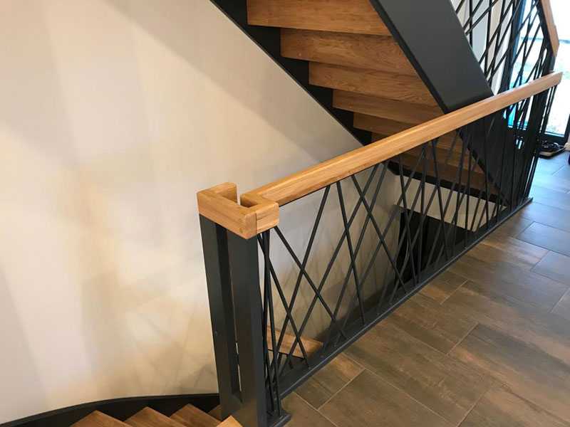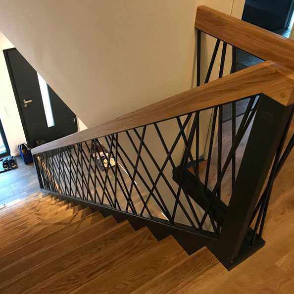 Kunstschmiedeeisen mit Holzhandlauf und Holzpfosten