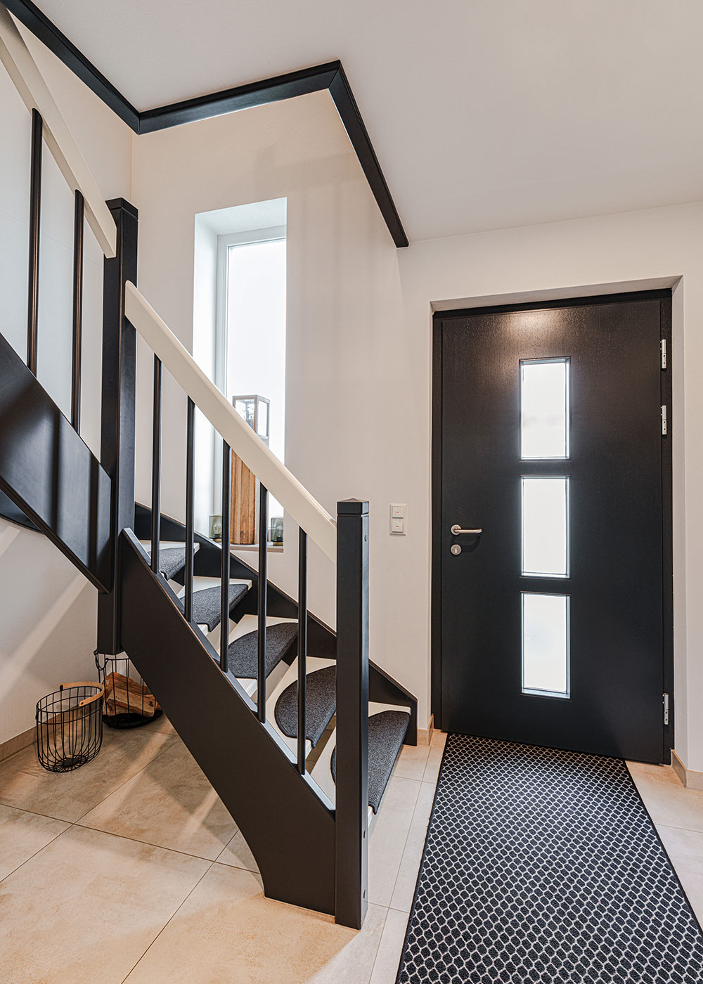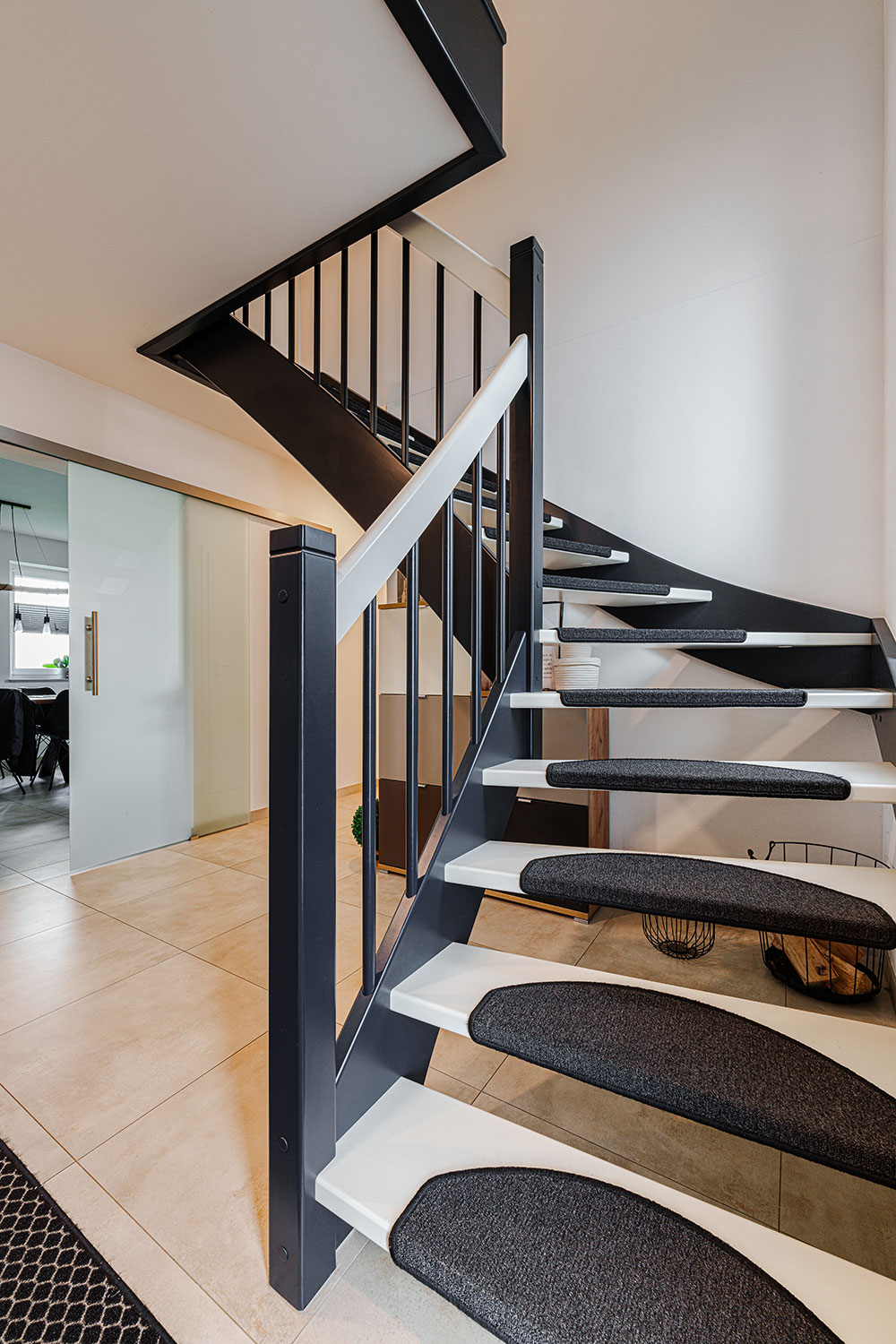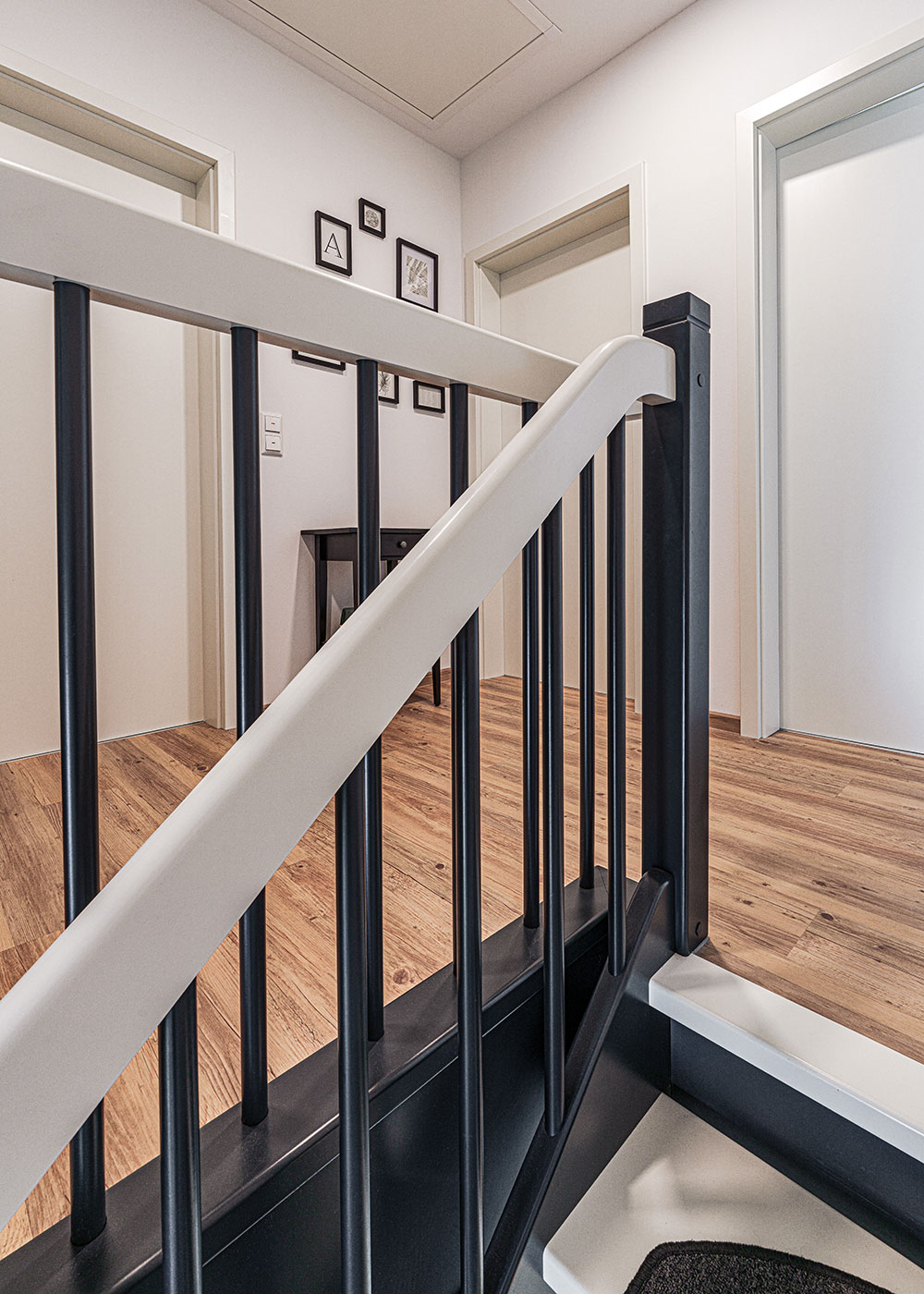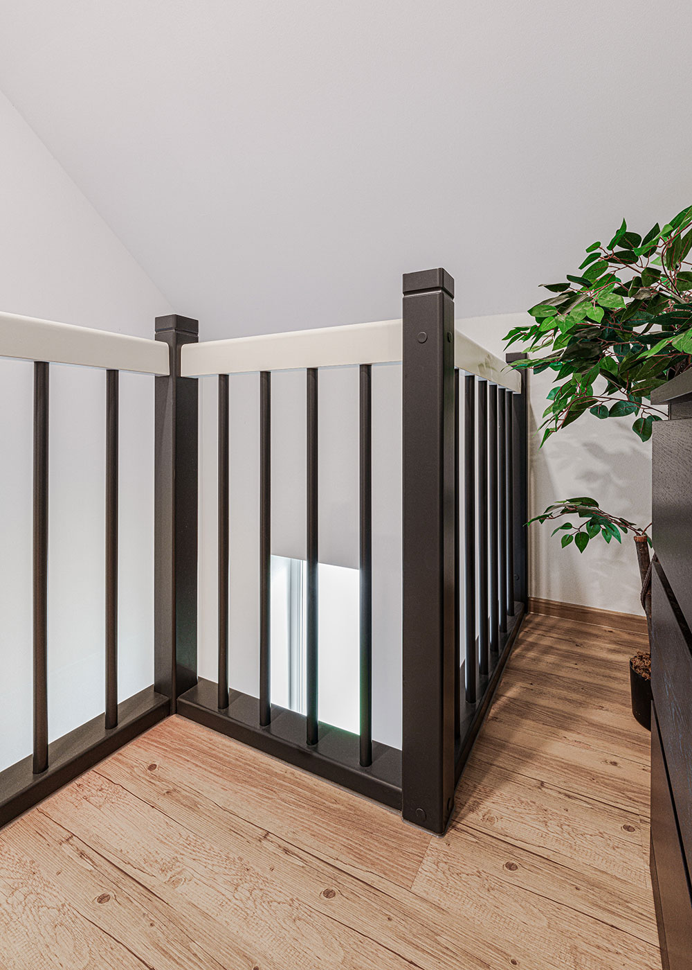 Wange, Pfosten und Stäbe – Erle deckend anthrazitgrau lackiert nach RAL